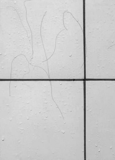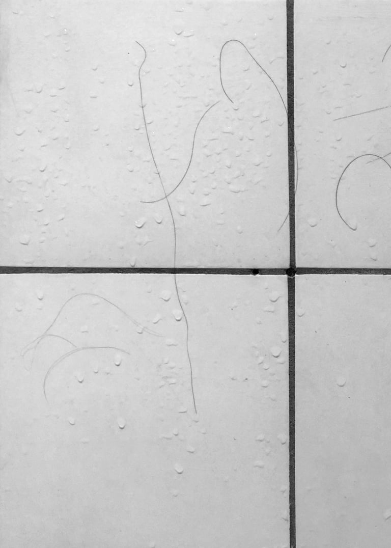 (...) Da jeg stod i bruseren om morgenen, havde hårene på fliserne ændret sig. Væsnet med de store øjne var skyllet væk og menneskeskikkelsens vandrestrav, var nu blevet til stammen på et træ, så det lignede mennesket stod og holdte på det.