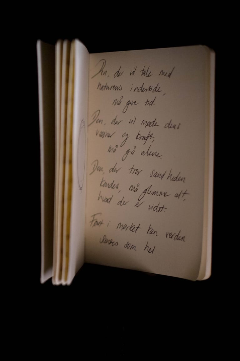 (...) For jeg har bemærket, at noget i os er ved at vågne. Noget dybt inde i vores kroppe, som hele tiden har eksisteret. At vi søger mod naturen og hinanden, mærker vores egen cyklus i takt med den, der omgiver os. Og at vores omsorg bærer en vigtig stemme. Som en blid revolution mod det, der styres af nervesystemer i kamp og flugt. En tilstand, der tvinger kroppen til at se verden i enten/eller. Os/dem.